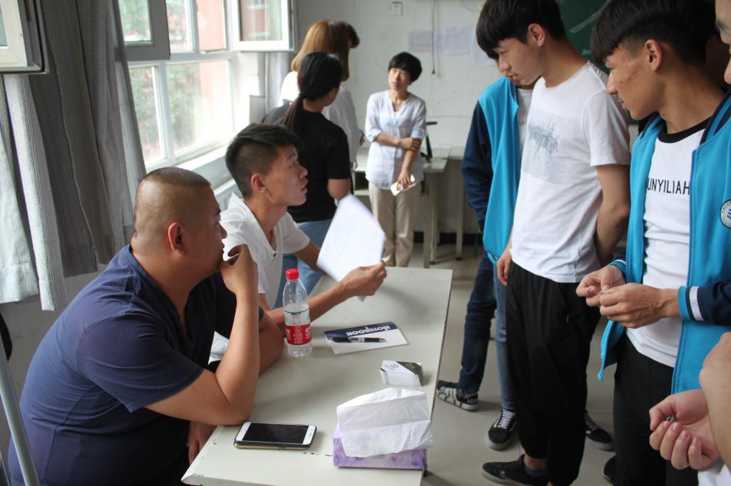 招聘现场让我们共同见证了企业的诚心和学生们认真对待实习的态度。一张张稚嫩的面孔即将要接收社会的考验,我相信孩子们会兑现他们的诺言:遵守企业规章制度,认真完成工作任务,为校争光,让老师放心,让家长放心。