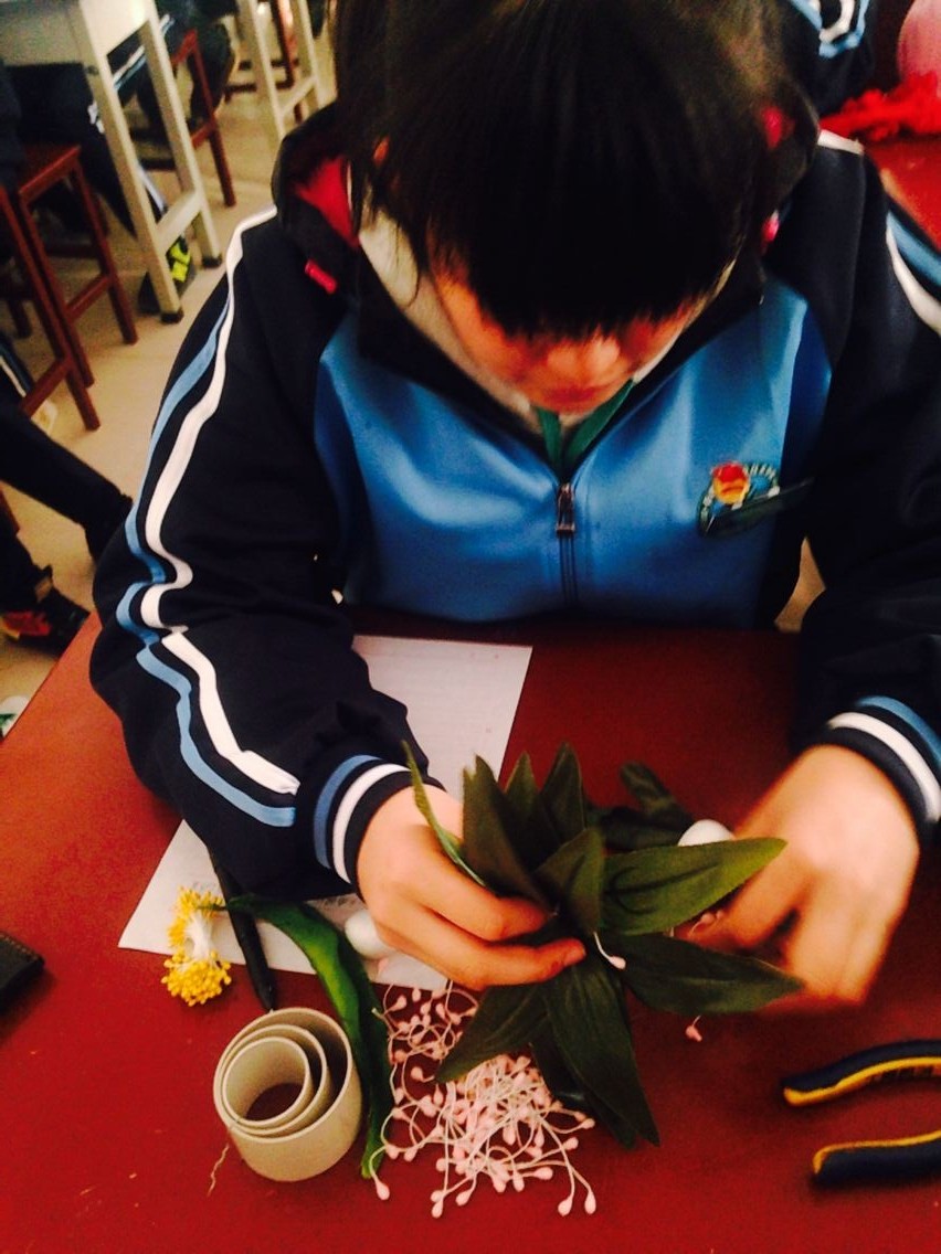 学生学做丝网花